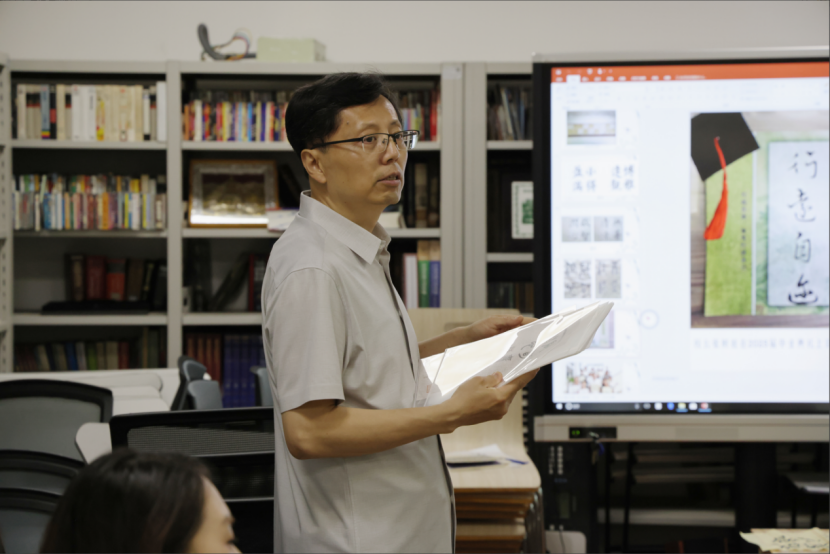 El profesor Man Yunhan ofrece una explicación durante la actividad de caligrafía